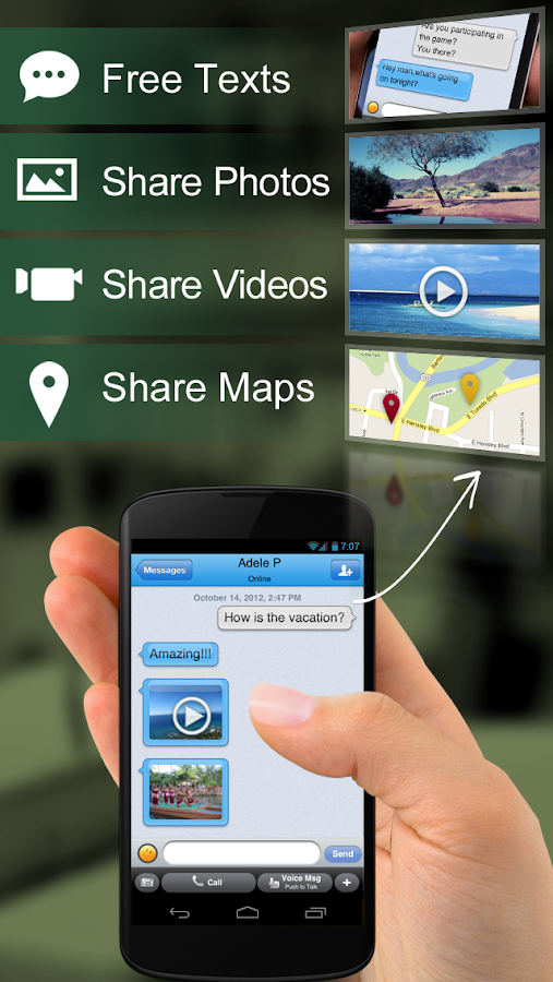 Dingtone allows you to make free phone calls, send free text messages, share photos, use Walkie Talkie like push-to-talk (PTT) functions, leave live voicemails and make conference calls.